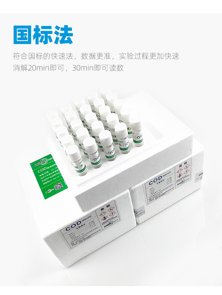 符合國標的快速法,數(shù)據更準,實驗過程更加快速消解20min即可,30min即可讀數(shù)